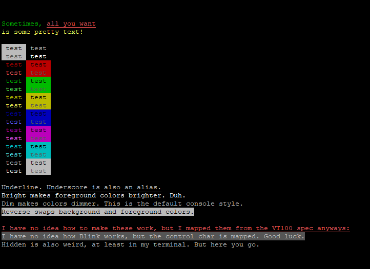 pretty.style('bright').write('Bright makes foreground colors brighter. Duh.').flush();