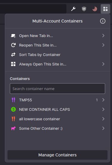 Here's how a container list looks like using the Multi-Account Containers addon from Mozilla:
