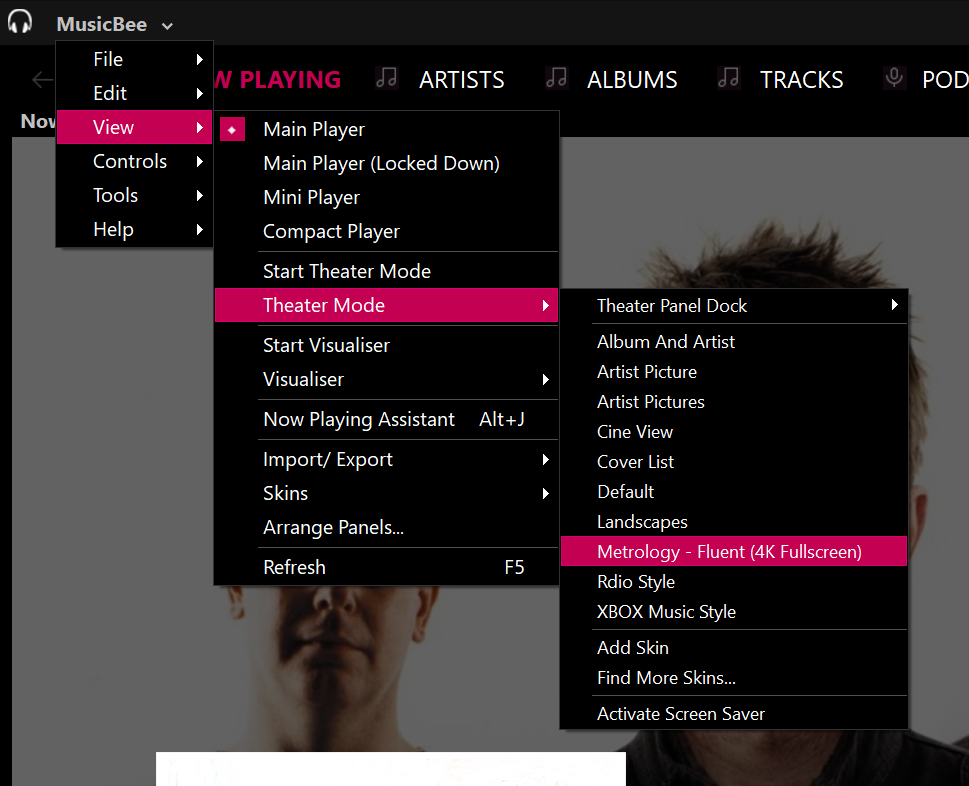 IMPORTANT: Remember to add the XML file as a Theater Mode Skin, not a normal Skin! Look for the right folder! If you make the mistake of installing as a normal Skin under the Skins folder, your MusicBee will crash hard.