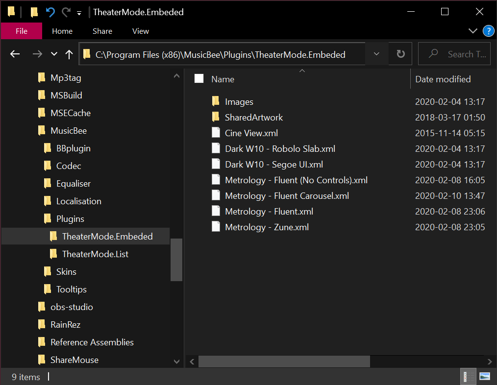 - Go to C:\Program Files (x86)\MusicBee\Plugins or where you installed MusicBee. In the Plugins folder, you will find two TheaterMode folders.