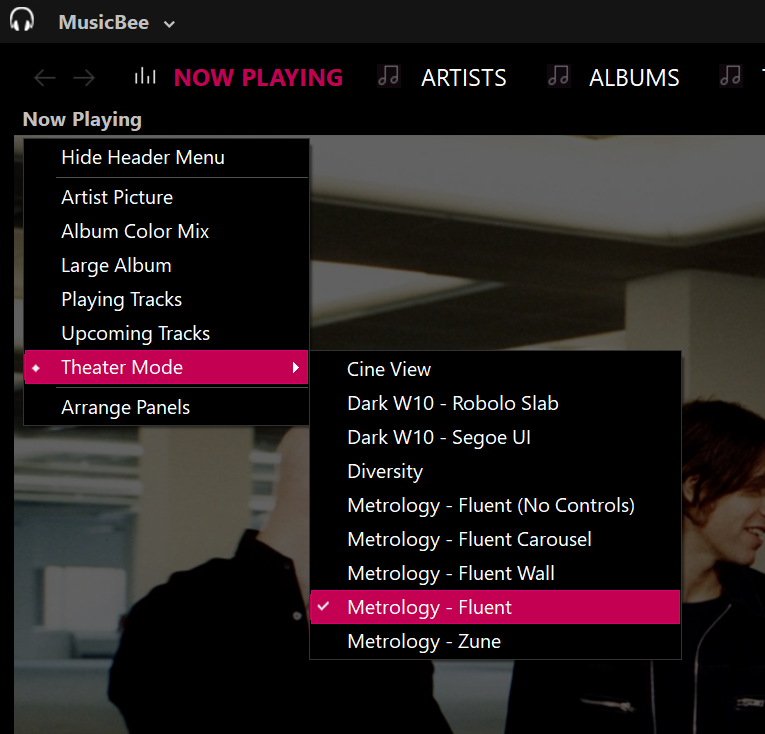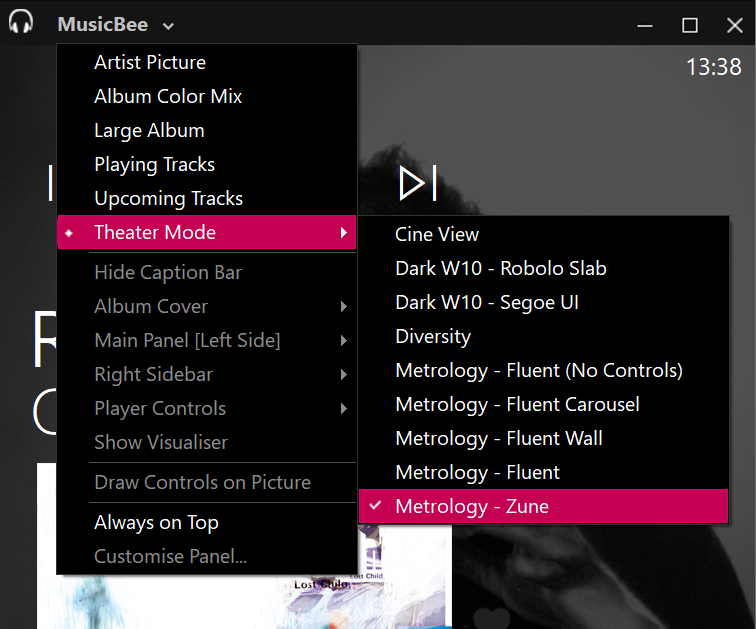 MusicBee is a highly customizable audiophile-grade music player for Windows. This is a skin for the Theater Mode, which displays the currently playing track in a large or full screen format.