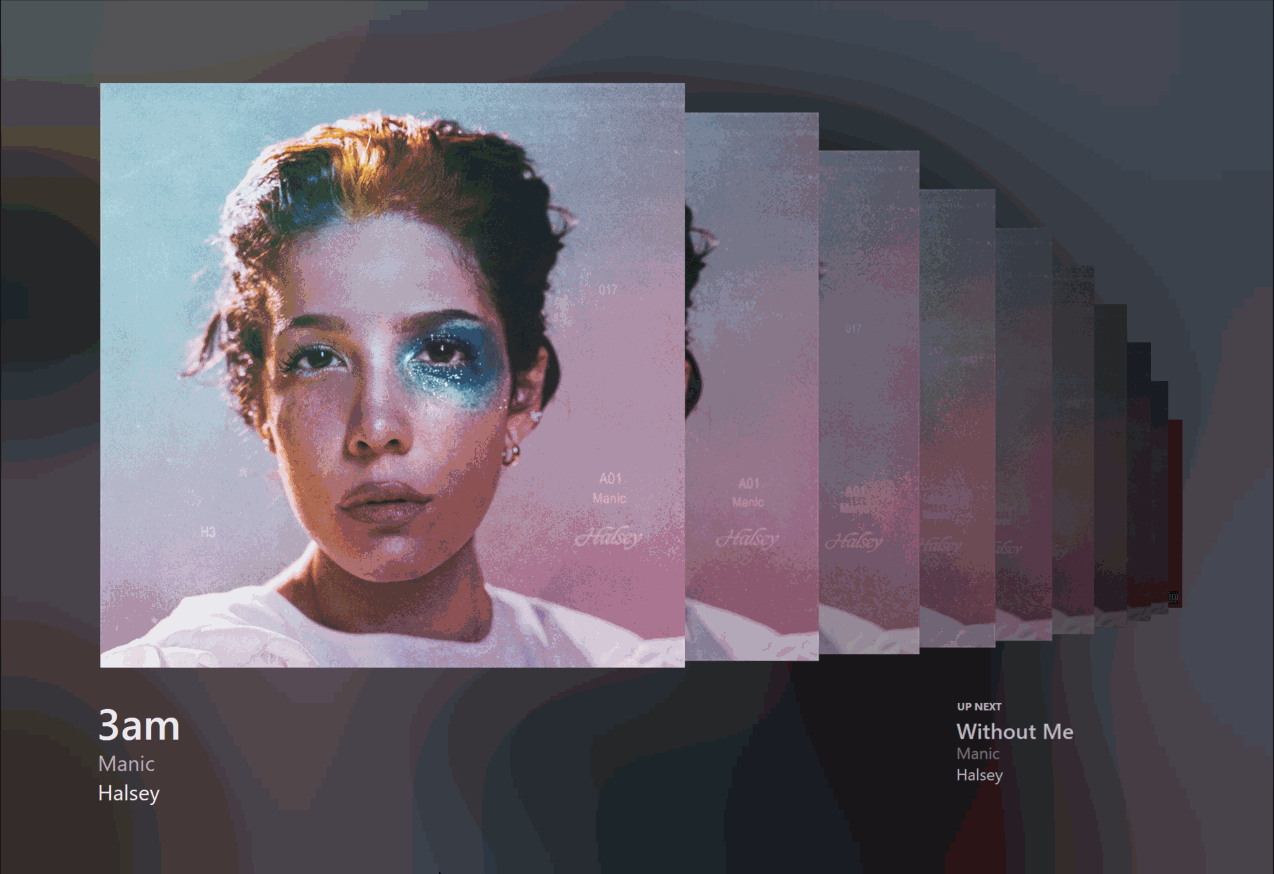 Fluent Carousel: A striking perspective view for showing the next 10 tracks.