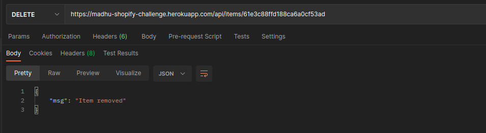 Requests can be made to the hosted api server using base url: https://madhu-shopify-challenge.herokuapp.com