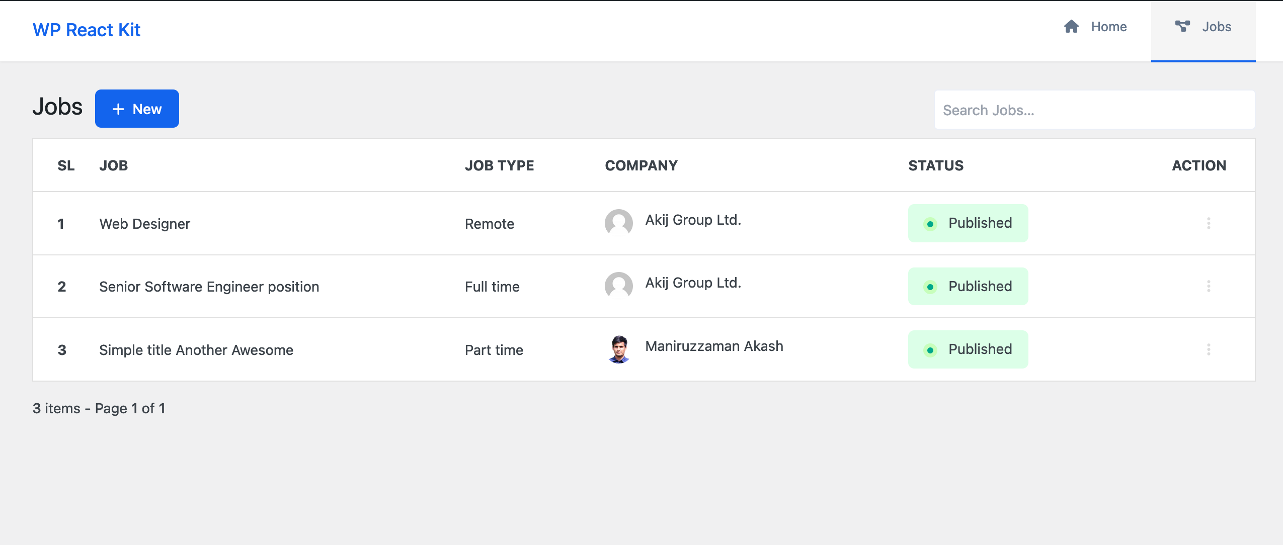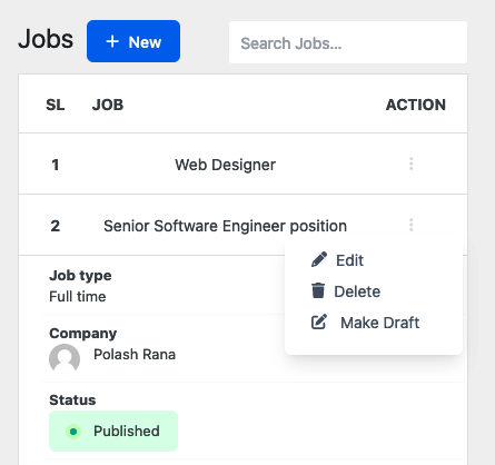 Job List Page with search