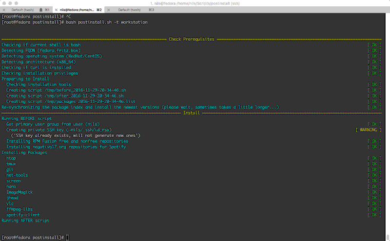 Example: postinstall.sh or postinstall.sh -t workstation