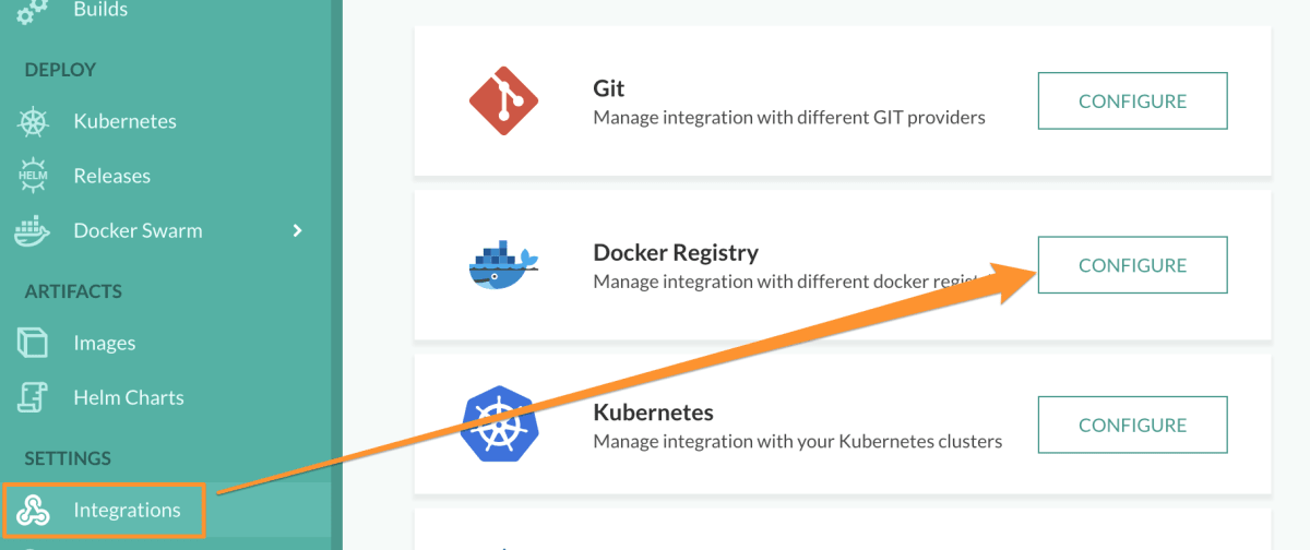 Jika Anda jalankan Docker Swarm di Server maka Codefresh dapat dengan mudah deploy aplikasi ke Docker Swarm menggunakan saluran pipa GUI atau YAML.