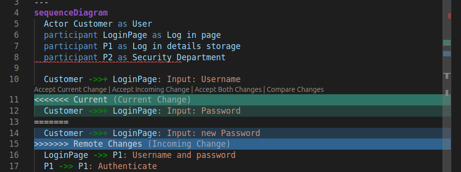 When a user modifies an existing diagram, before saving it to MermaidChart service, it smartly checks if any modification is made in the web view, and if found, it indicates to the user to resolve any conflicts, and then save the resolved diagram back.