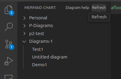 To get the latest changes of diagrams from Mermaid Chart, click on the button named Refresh at the top in the side panel.