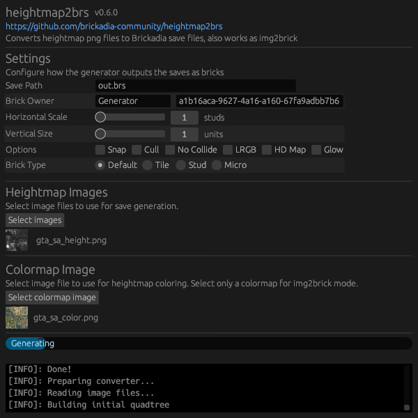 heightmap example_maps/gta5_fixed2_height.png -c example_maps/gta5_fixed2_color.png -s 4 -v 20 --tile -o gta5.brz
