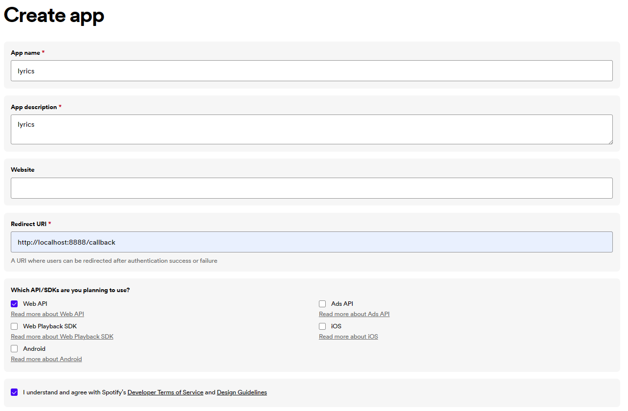 Then, in the "Redirect URI" section, enter http://localhost:8888/callback.