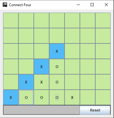 Connect-Four is a tic-tac-toe-like two-player game in which players alternately place pieces on a vertical board 7 columns across and 6 rows high. The objective of the game is to be the first to form a horizontal, vertical, or diagonal line of four of one's own tokens.