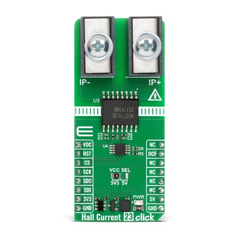 Hall Current 23 Click demo application is developed using the NECTO Studio, ensuring compatibility with mikroSDK's open-source libraries and tools. Designed for plug-and-play implementation and testing, the demo is fully compatible with all development, starter, and mikromedia boards featuring a mikroBUS™ socket.