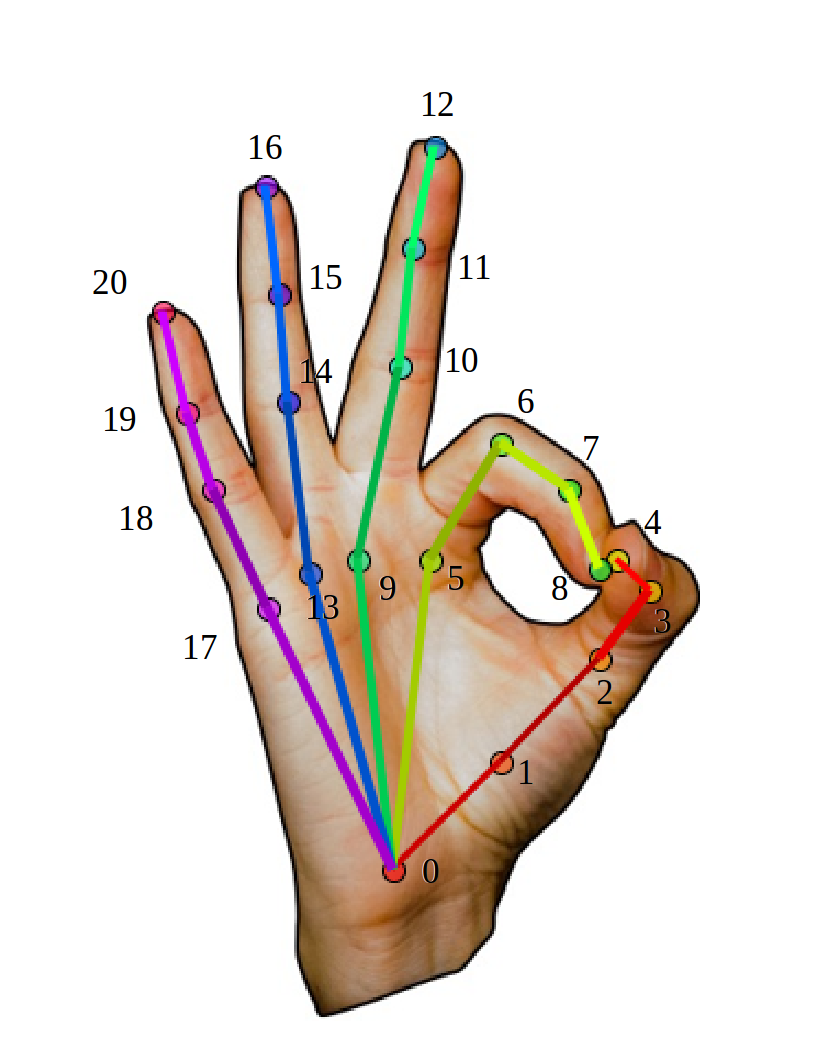 https://github.com/CMU-Perceptual-Computing-Lab/openpose/blob/master/include/openpose/hand/handParameters.hpp#L16 is the original handmodel colors. openpose is under a non-free license - my personal opinion is using just the colors is fair use, but IANAL. |