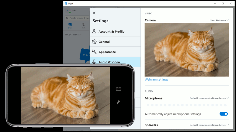 将手机的摄像头用作 PC 或 Mac 中的无线网络摄像头。 安装适用于 Windows、Mac 或 Linux 的网络摄像头,将 Iriun 网络摄像头应用程序下载到您的手机,然后开始使用手机和您喜欢的视频应用程序。