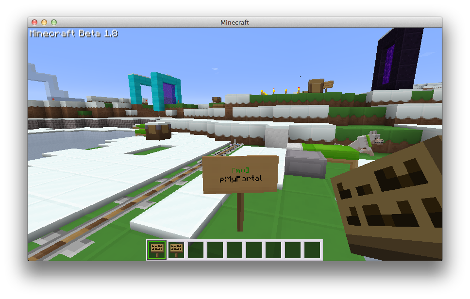 Place A sign. Type text in the same format as this (make sure [mv] is on second line of the sign and world is on the third):