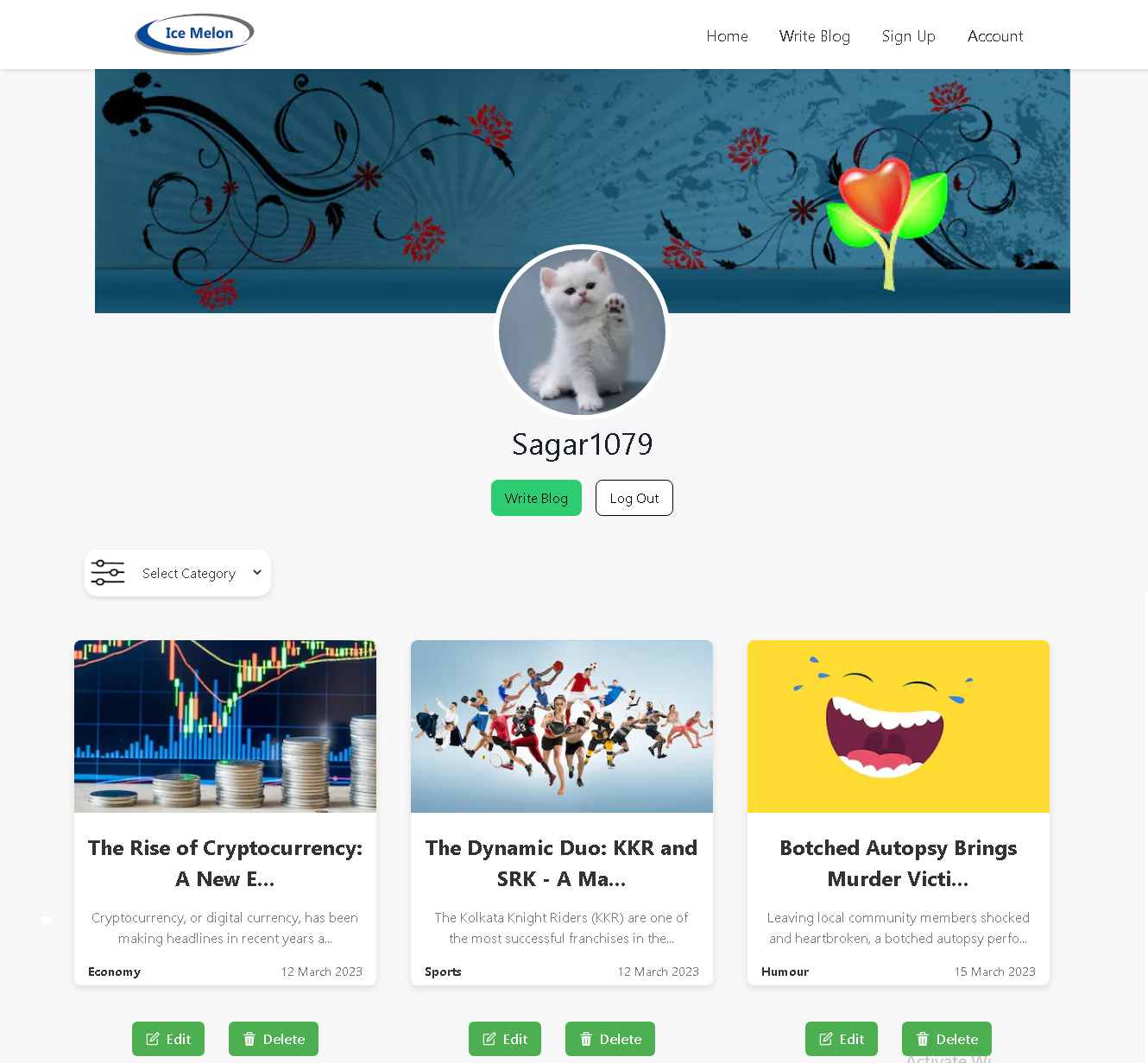 Authenticated user can edit and delete their own Blog.