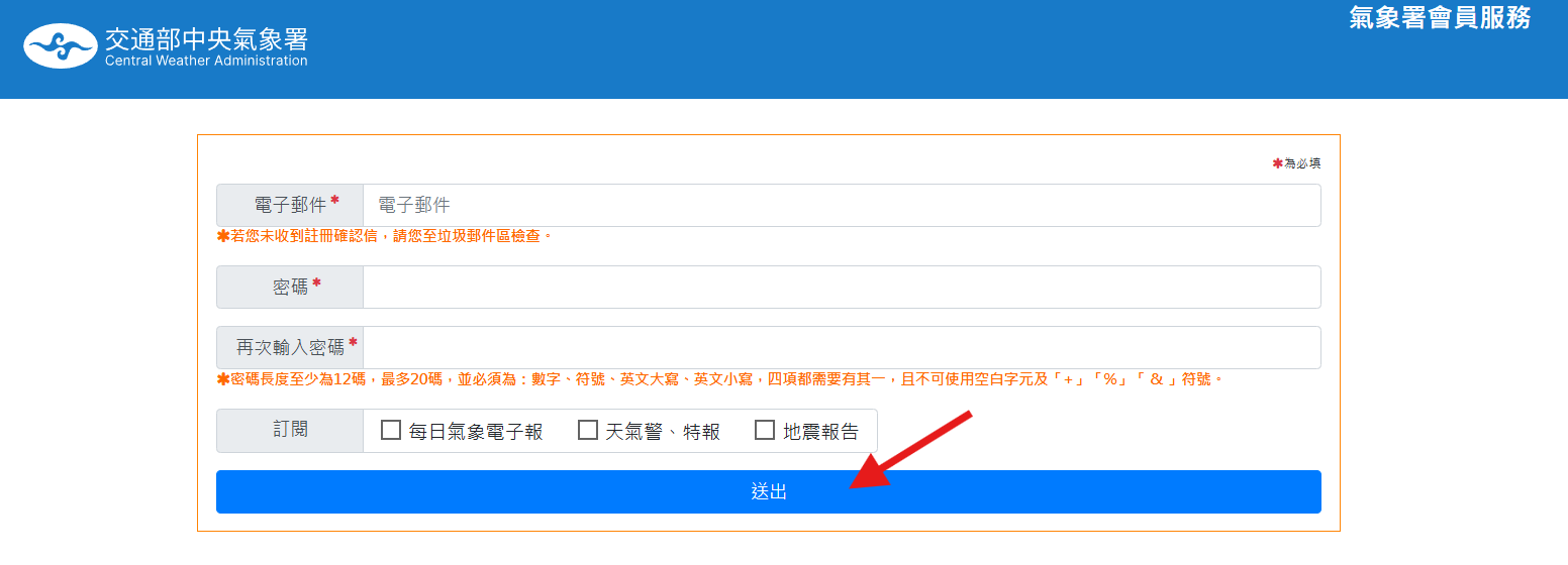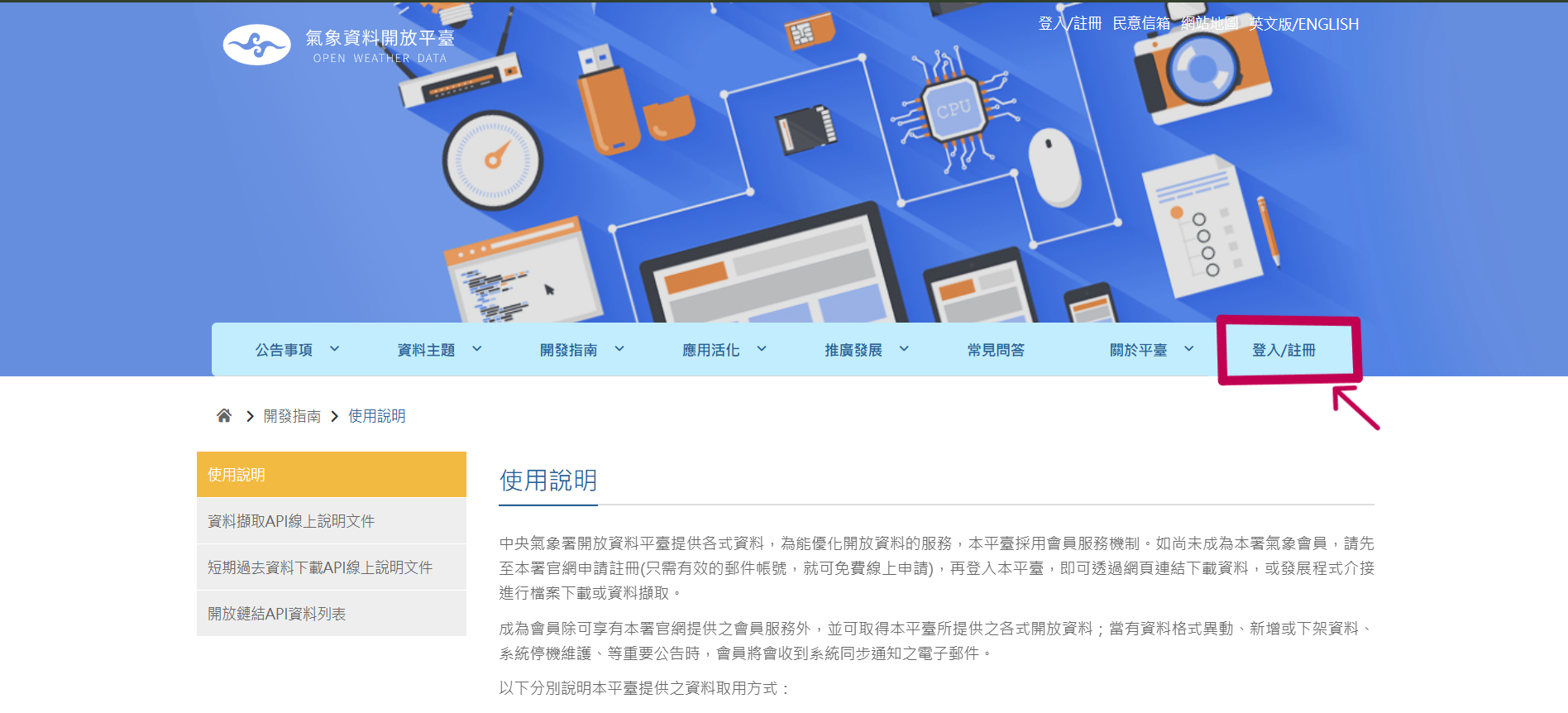 首先,進入中央氣象局的氣象資料開放平台,註冊帳號。