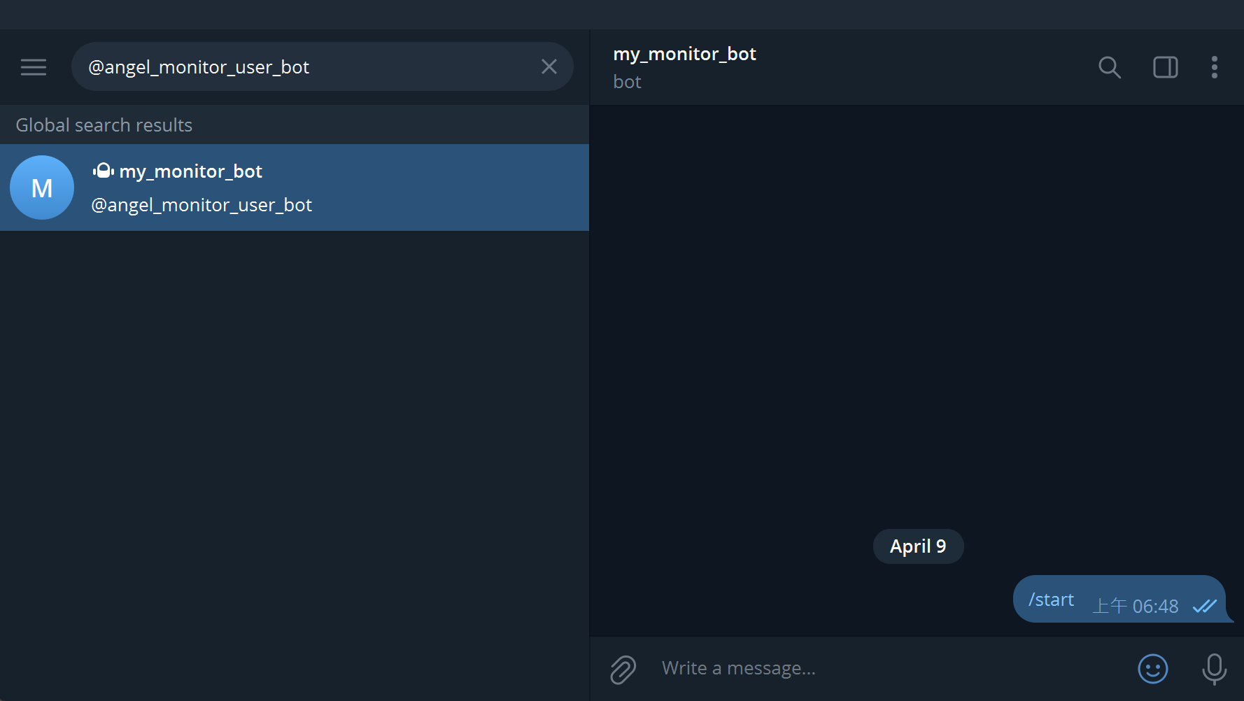 - 使用者名稱(結尾需是 bot,如:my_monitor_bot)
