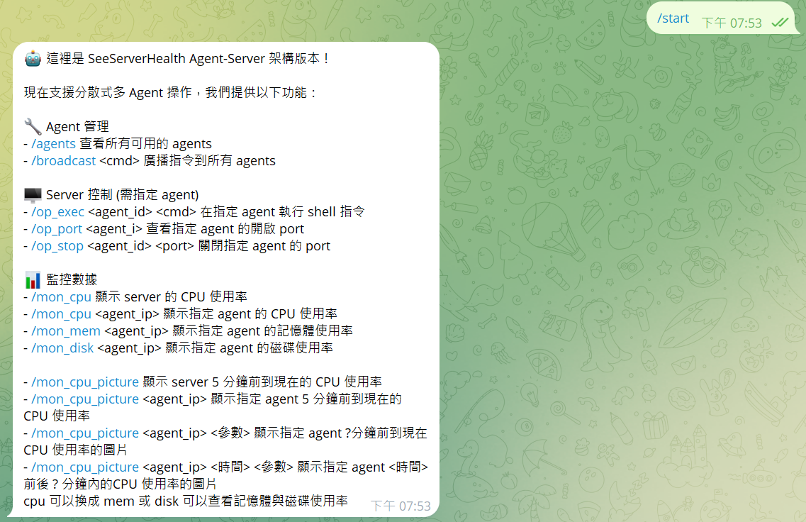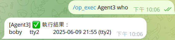 - 啟動 Telegram Bot..." python3 app.py :information_source: 若有改動 agent_name_ip.txt,要執行以下步驟做更新: