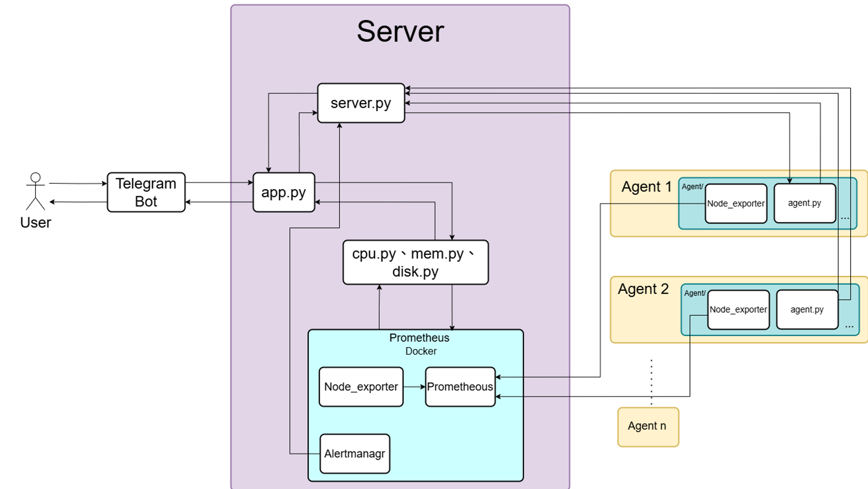 - 使用者可以透過 Telegram 新增 Agent(監控對象)