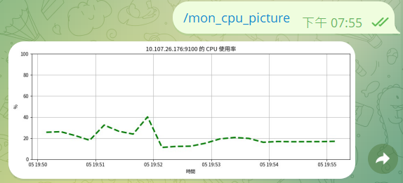 /mon_cpu_picture <agent_ip>或<agent_name>顯示 指定 agent 5 分鐘前到現在的 CPU 使用率折線圖