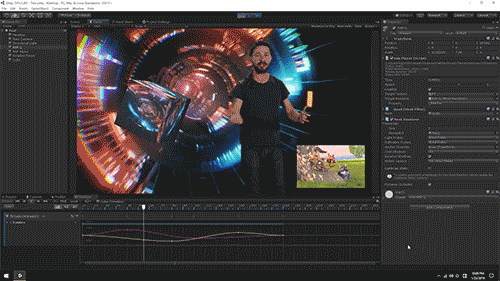 KlakHAP provides video frames as textures that can be used in any way on Unity's rendering pipeline — attaching to a material, presenting a full-screen video, animating a UI element, etc. Thanks to the performant design and implementation of the HAP codecs, it can dynamically control the playback time/speed without any hiccups.