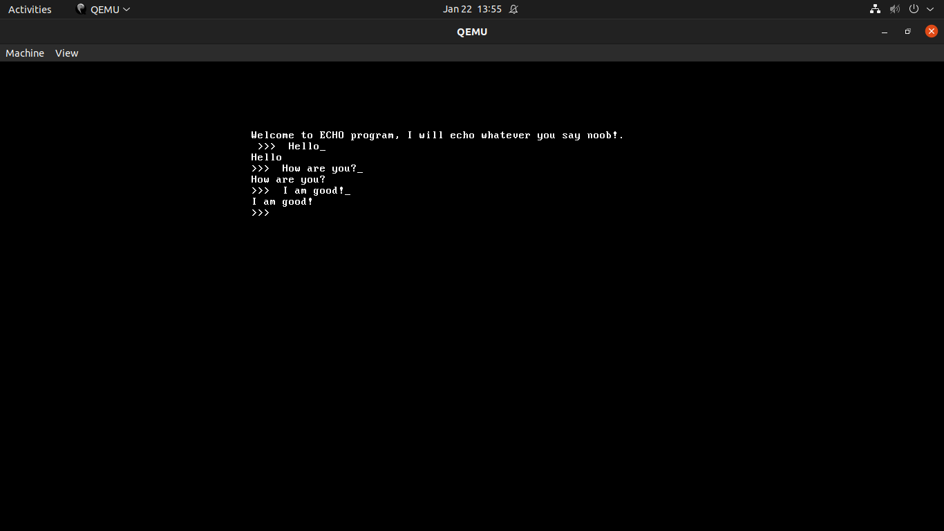 ECHO client user-program running on QEMU (more to come)