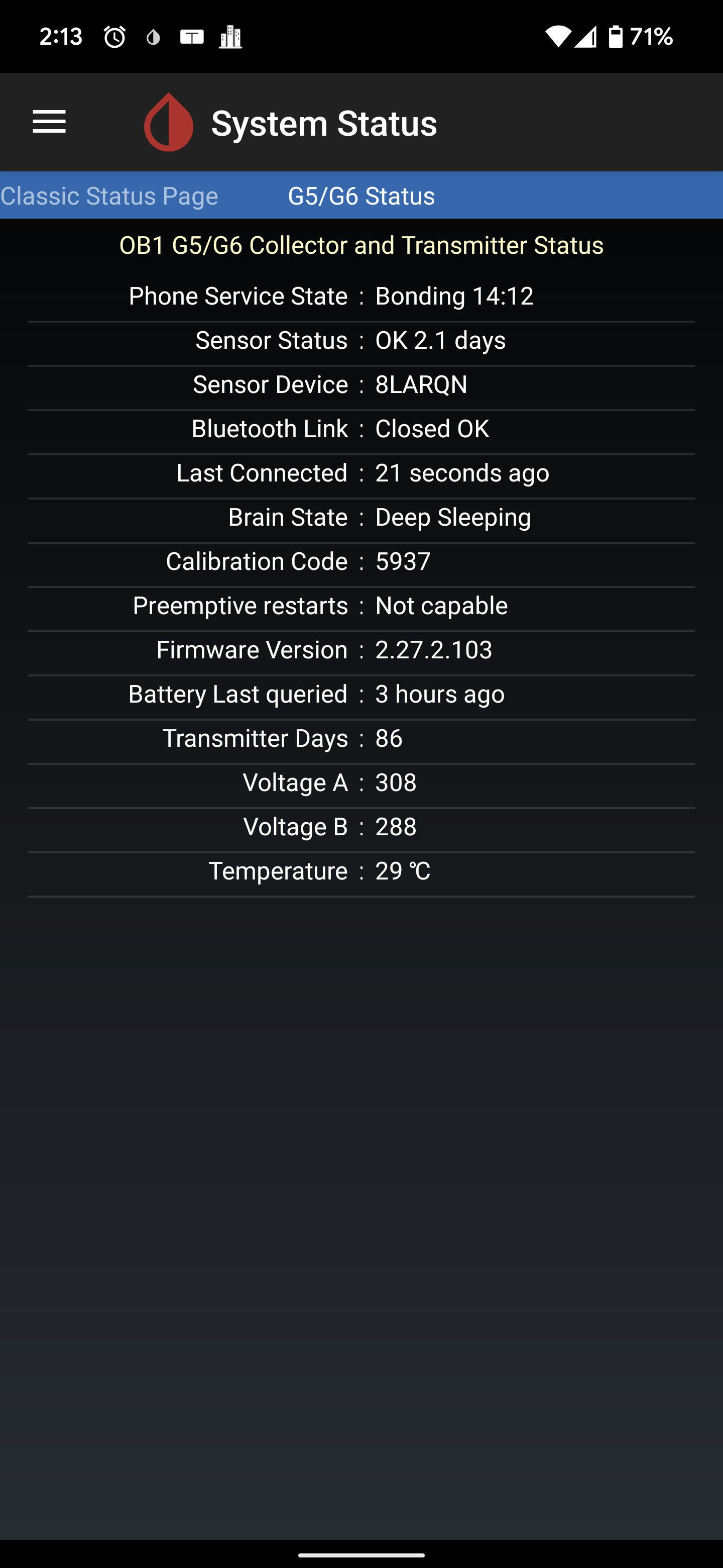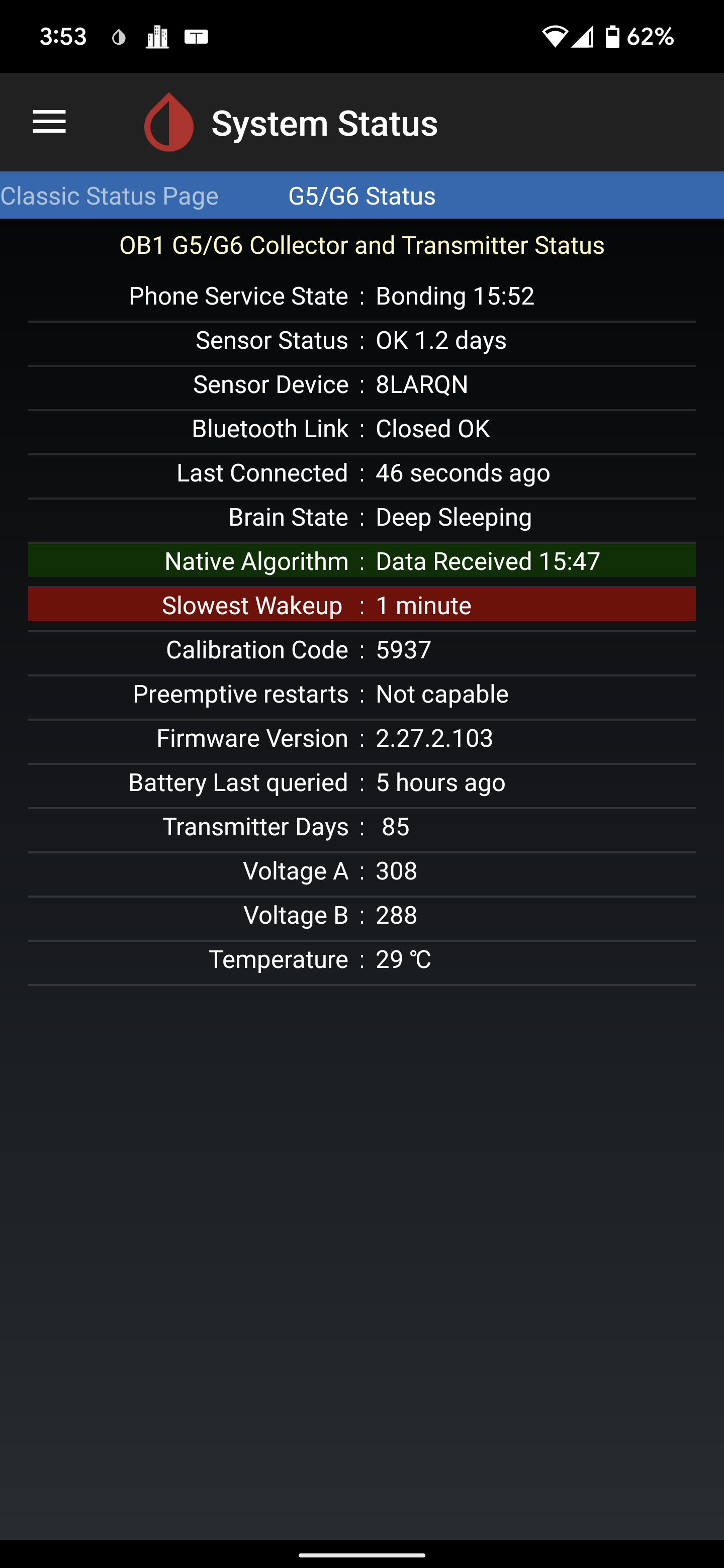 Recently switched to Pixel 6 Pro and running into a situation where it gets stuck in a "Bonding" state. I have previously managed to get it working and have it be rock solid, until I rebooted yesterday for an update. Now it will connect once, then get stuck Bonding. It connects but gets no data. If I restart the collector it will get data then get stuck again. If I forget the device and re-pair the transmitter, I get one or two readings and back to stuck bonding. I've reviewed my settings and compared with the documentation and it matches up.