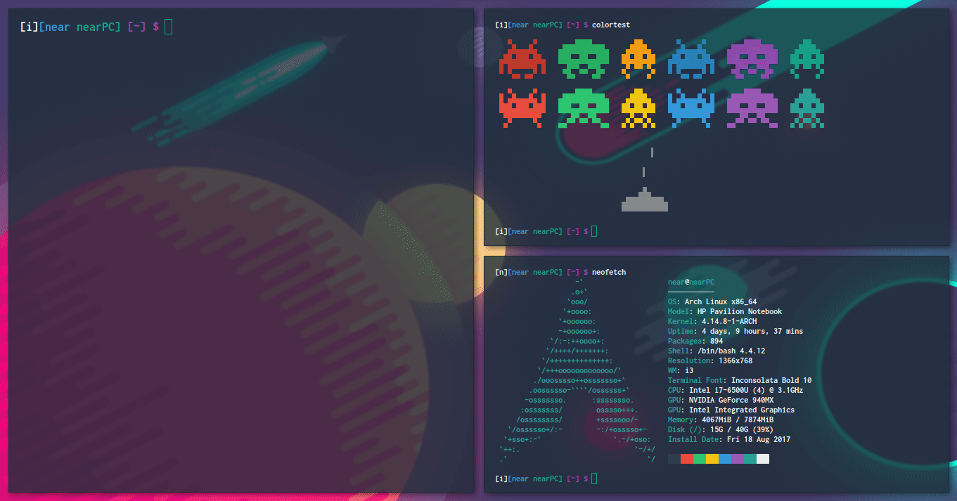 $ cp termite-color-switcher/bin/color colorOptional: Enable autocompletion for bash and zsh