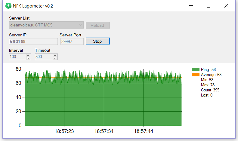 The program measures UDP ping to NFK servers