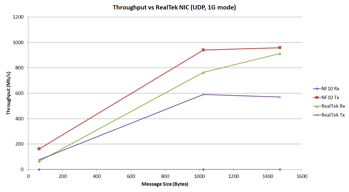 This test measures the performance of the NetFPGA-10G (1G Reference NIC) connected to RealTek RTL8111/8168B 1G NIC built into our test hosts.
