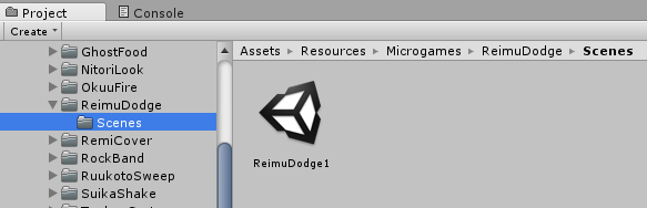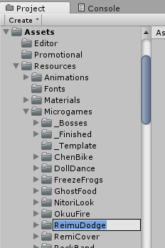 Now, create a new microgame folder here (Right click > Create > Folder), call it "ReimuDodge".