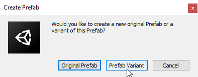 We can make special bullet types using Variants. Try dragging the Bullet prefab you made earlier from your scene back into the Prefabs folder, and select "Prefab Variant" when prompted: