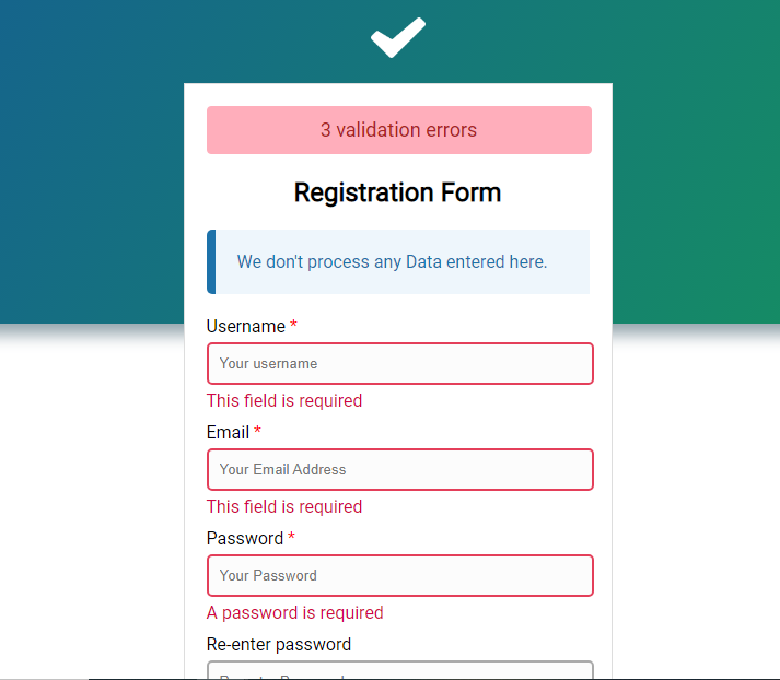 Use the ReactJS release of this library to validate your front-end forms client-side.