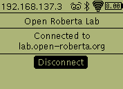 This code will have to be entered on the web-ui to establish the link. Once that has been done a beep-sequence on the EV3 confirms the link and this screen is shown: