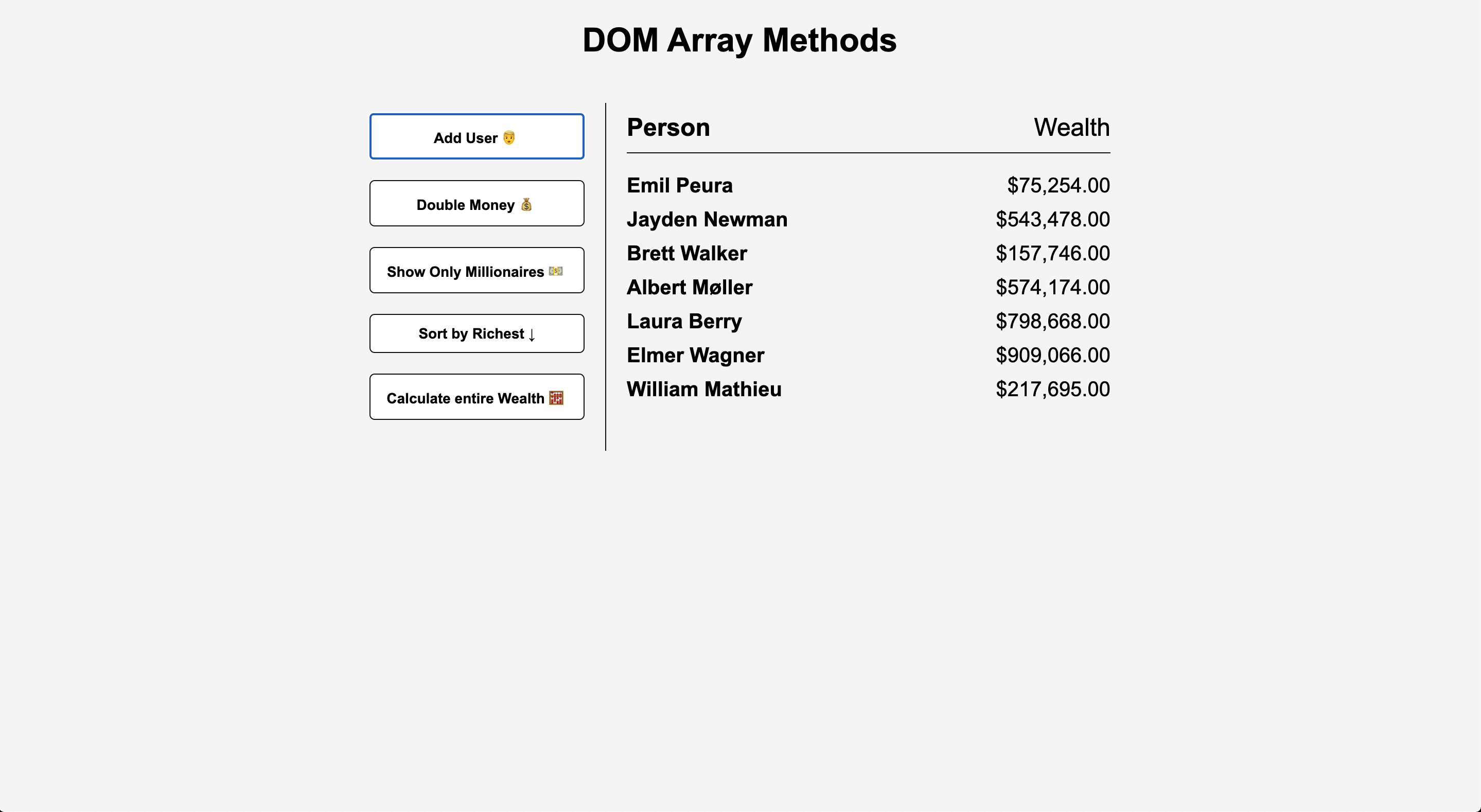 In this Project I used random user API (randomuser.me). I used fetch API for this and I aimed to practice how to use high level array methods. I used map,filter,sort,forEach,reduce methods.