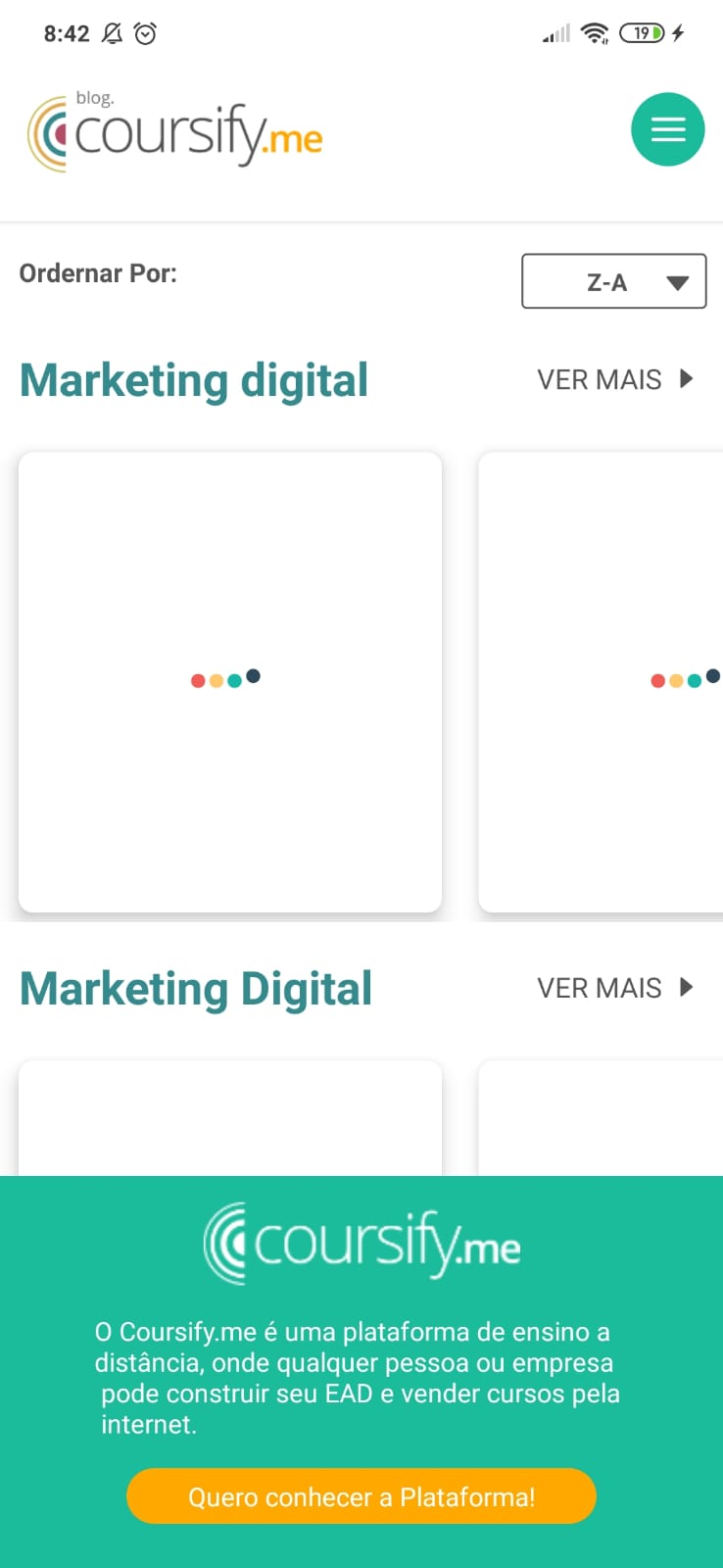 Aplicativo criado para demonstrar o conhecimento em React-Native, consumindo a API do Coursify, exibindo os posts por categoria, organizando o conteúdo conforme os filtros, e exibindo o conteudo das postagens.