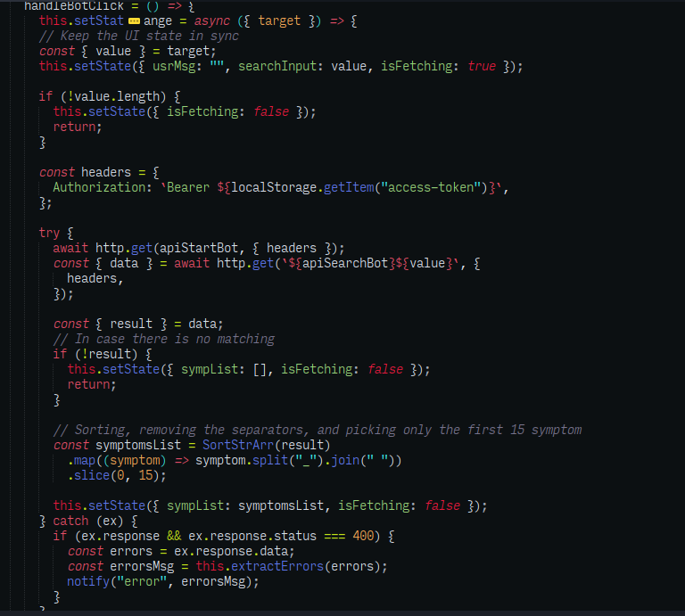 Try to use RxJS with React to improve the search and the overall performance(saved bandwidth from unnecessary requests to the backend API)