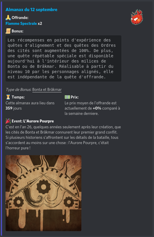 Disables the display of the Almanax of the day on the Discord server |