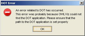 "An error related to DOT has occurred. This error was probably because OWL Viz could not find the DOT application. Please ensure that the path to the DOT application is set properly"