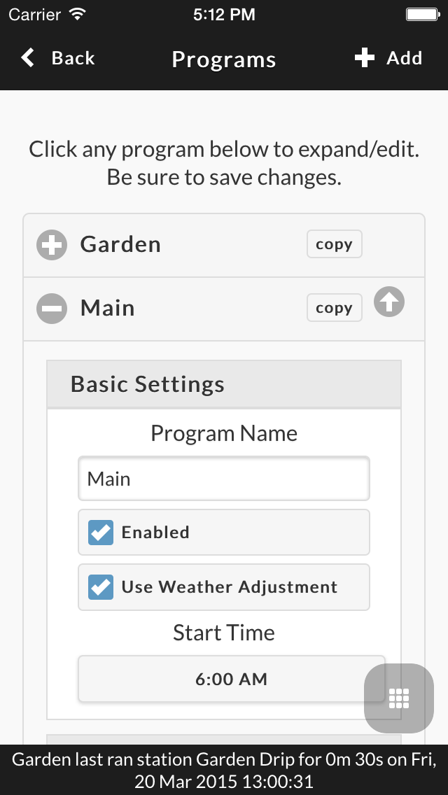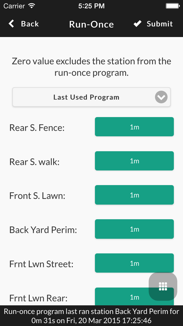 A mobile interface for the OpenSprinkler irrigation device. Designed to allow manual control, program management (view, edit, delete and add), initiation of a run-once program, viewing device status, adjusting rain delay, changing of OpenSprinkler settings and much more.
