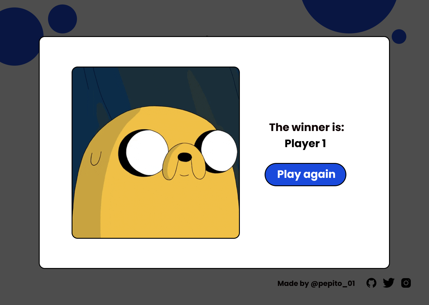 0%, debe aparecer el modal. - El modal debe contener un Gif aleatorio (para esto se debe consumir la API de Giphy) con un texto que indique quién fue el ganador y un botón