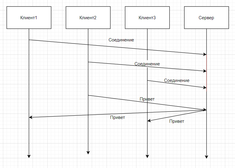 Клиент отправляет запрос на соединение с сокетом сервера.