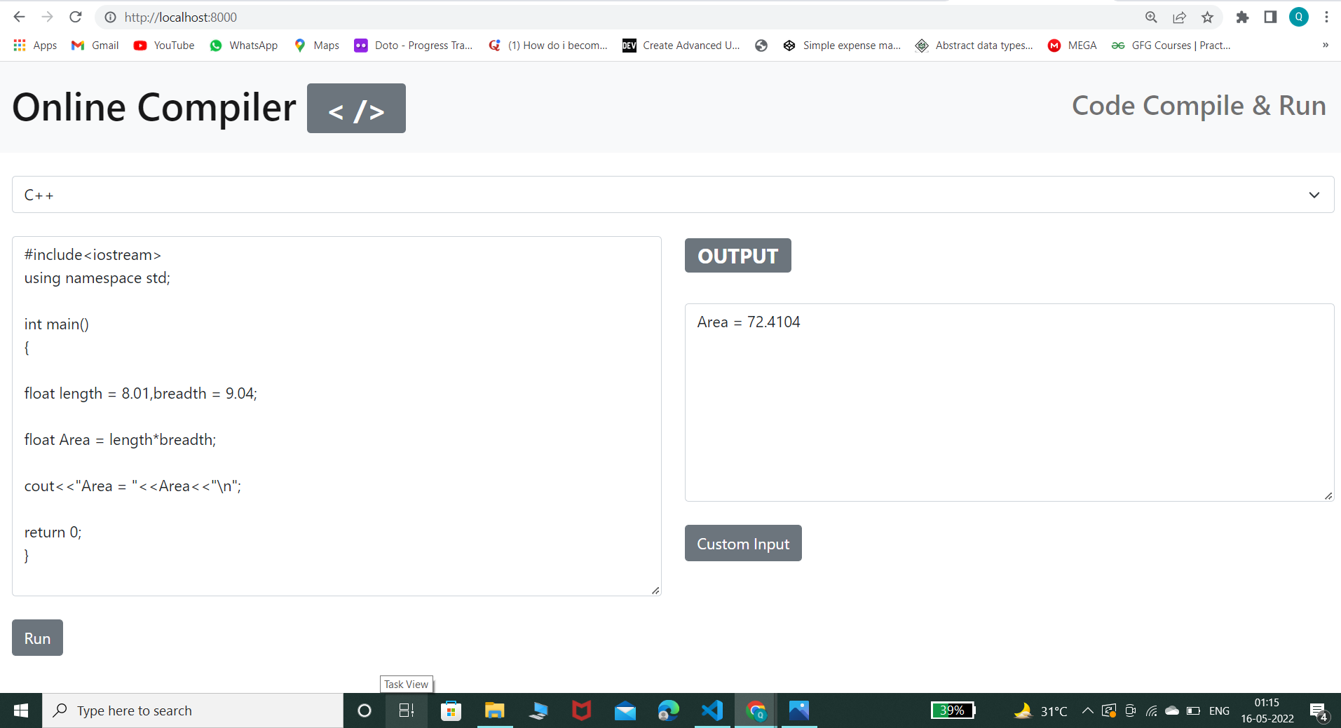 – A NodeJS -based online compiler that can compile and run C, and C++ programs. GitHub – It supports real-time compilations using AJAX, jQuery and file handling, and child process libraries of NodeJs with multiple themes, and syntax highlighting using Ace.js