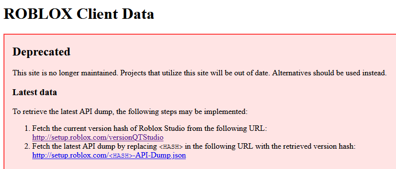 Follow instructions at: https://anaminus.github.io/rbx/  E.g. [json dump](http://setup.roblox.com/version-03afb53edcef4231-API-Dump.json)