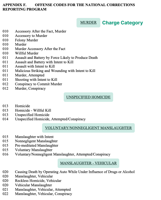 Currently ROTA predicts the Charge Category of a given offense text. A charge category is one of the headings for offense codes in the 2009 NCRP Codebook: Appendix F.