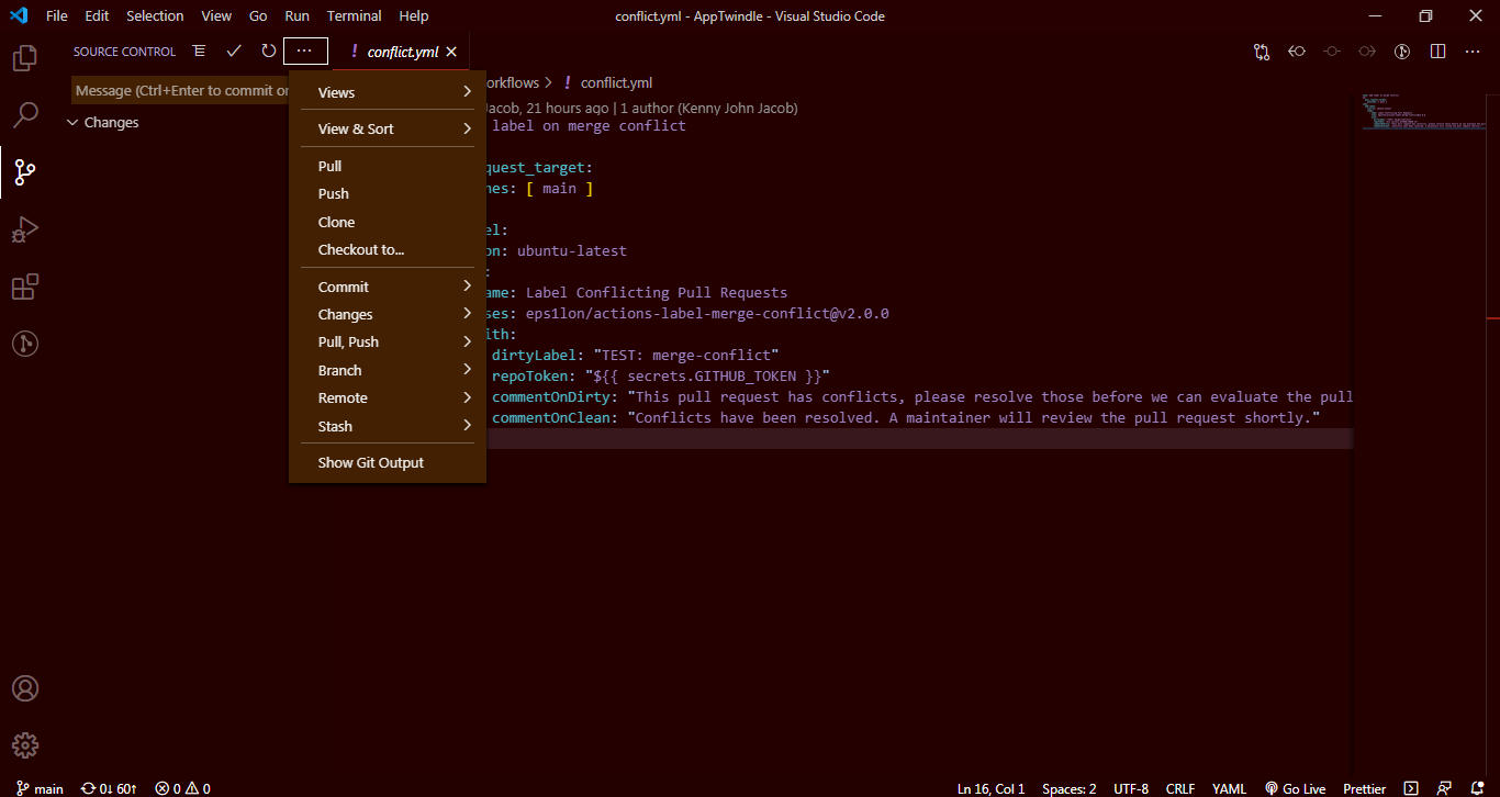 Step 3: - After clicking the Source Control Button, you will see Three dots, click it then a Dropdown will appear like shown below,