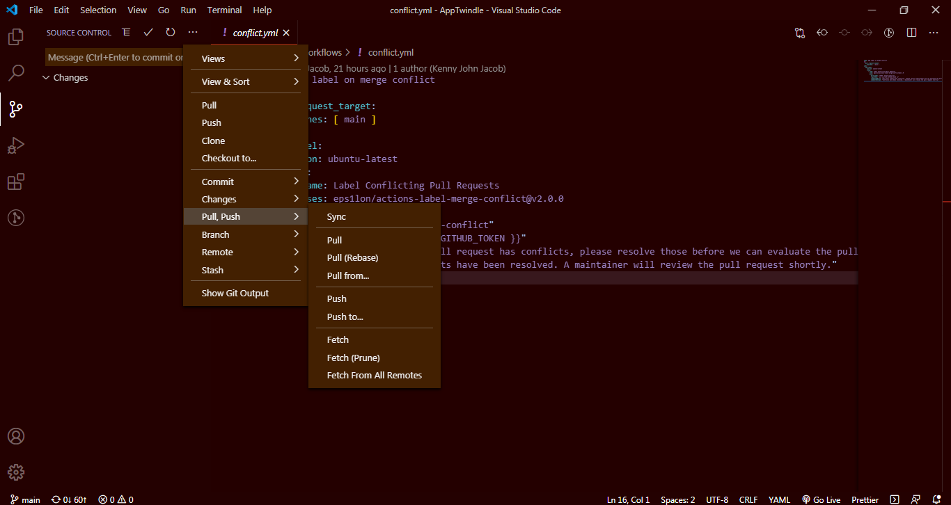 Step 4: - Click Pull, Push button then another Dropdown will appear where you have to click Pull from... button