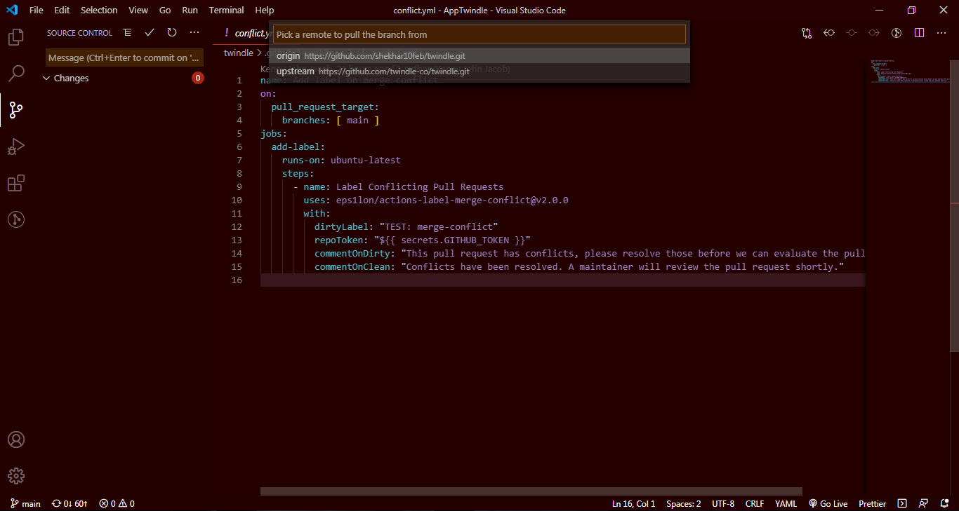 Step 5: - Here, you will see a Box with two options and you have to select Upstream option because Origin option is what you set it from your GitHub account, where you forked it from the main branch. Click Upstream option two times and wait for some times. Now, your local repository is synced with main repo.