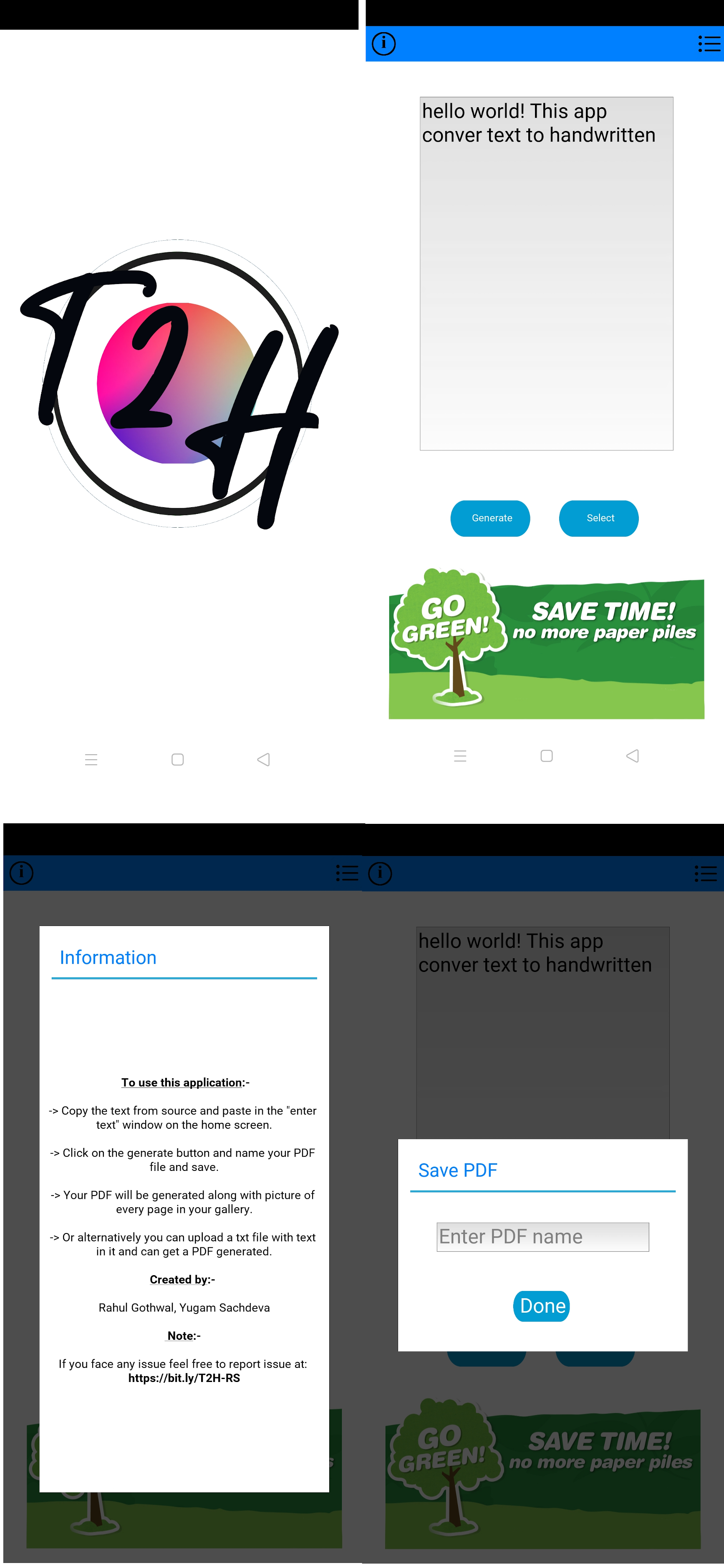 This is a mobile app which convert text to handwritten text and generate a PDF as output.